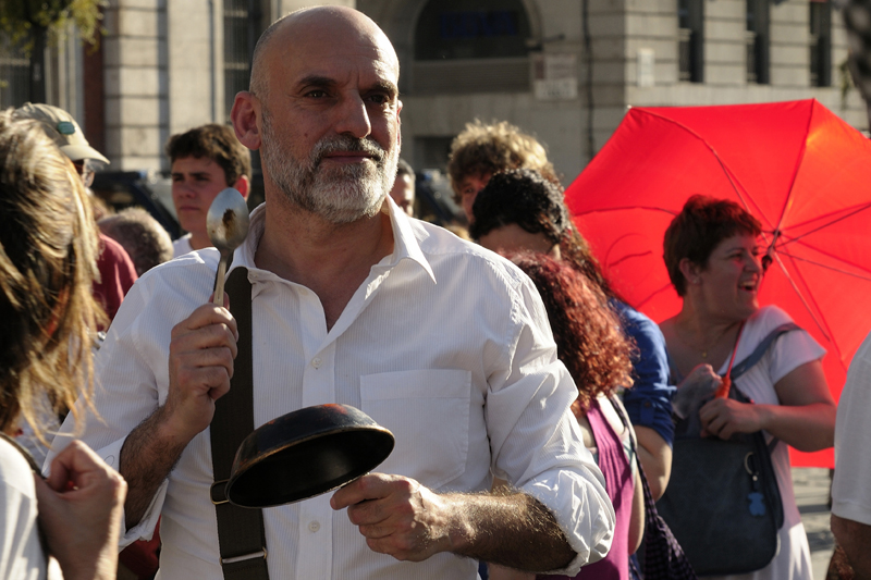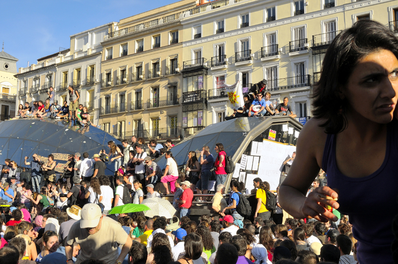 „Indignados“ – die Empörten – nennt sich der wachsende Teil der spanischen Bevölkerung, der mit den wirtschaftlichen und sozialpolitischen Entscheidungen der Mehrheitspolitik nicht mehr einverstanden ist. Am Beginn der 15M-Bewegung verspotteten Medien und Politik die Demonstranten als „Perroflautas“ (Hund und Flöte) – ein spanisches Synonym für „Hippies.“ Die Bezeichnung sollte wohl zum Ausdruck bringen, das es vor allem die „Faulen“ oder „Glückssüchtigen“ seien, die die Rettung der Raffgierigen und die sozialen Einschnitte ablehnten. Doch die Bewegung setzte sich aus Teilen aller Bevölkerungsschichten zusammen. Sie erwiderte die Beschimpfung bald mit dem Ausspruch: „Wir sind alle Perroflautes“//