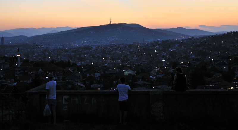 Sarajevo ist eine Stadt im tiefen Tal. Von den Bergen und aus sicherer Höhe führten die bosnisch-serbischen Streitkräfte ihren rassistischen Zermürbungskrieg gegen die Stadt der vielen Kulturen. Heute fotografieren Touristen von dort aus das Funkenmeer des wieder friedlichen Sarajevo. Kameradisten tun das auch.